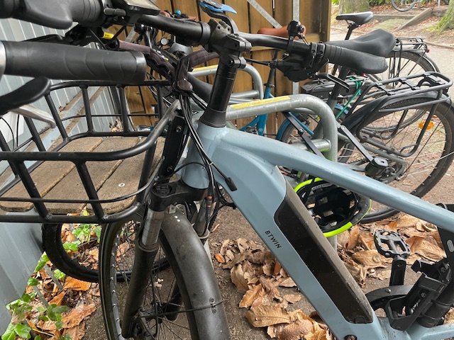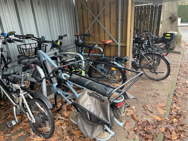 Ce vélo cargo est parqué à l’école depuis plusieurs semaines.