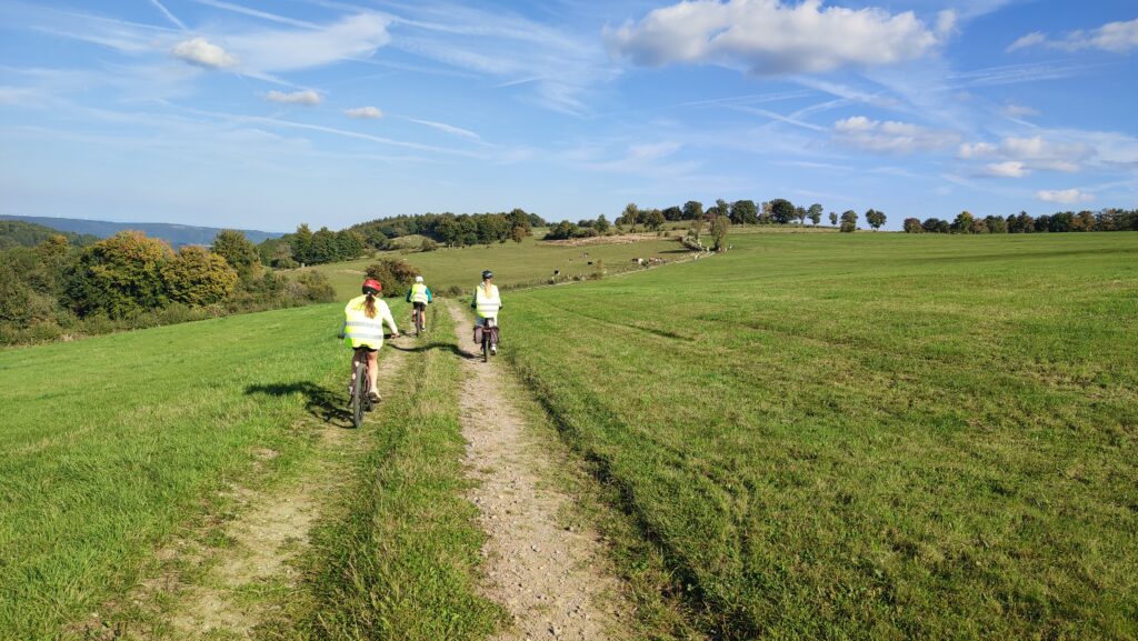“ Mes ami.e.s m’ont encouragée et aidée à surmonter les difficultés et j’ai apprécié notre arrivée dans la campagne à vélo. Je suis fière de ne pas avoir utilisé le vélo électrique.” L.
